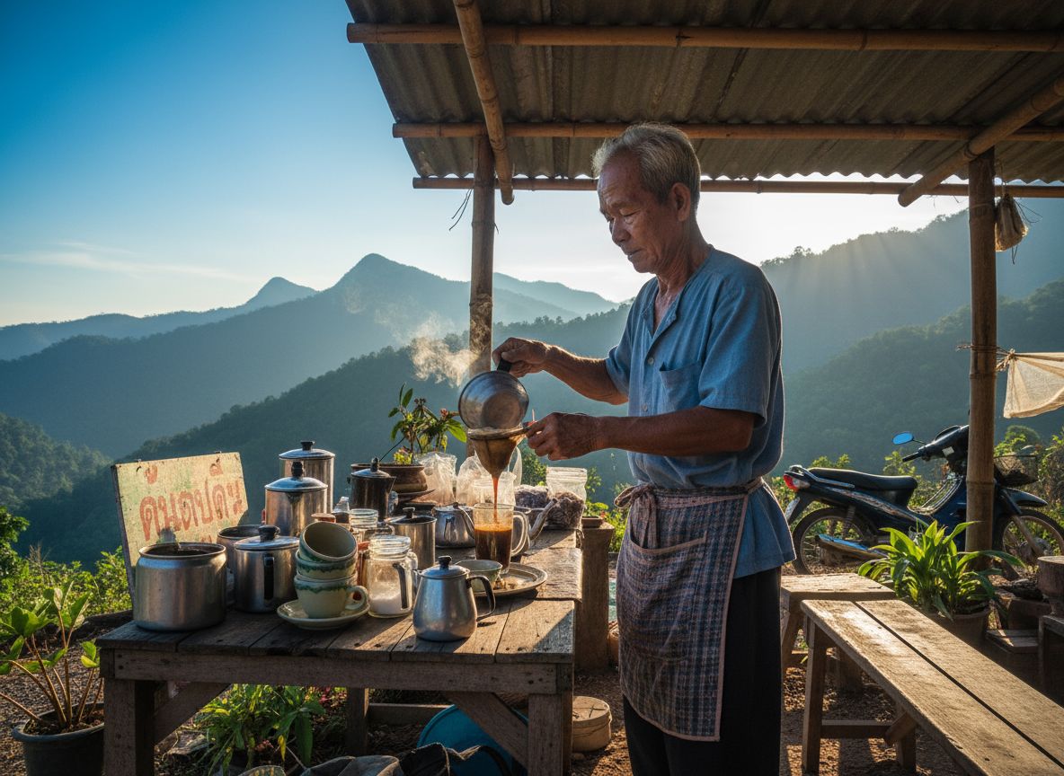 Forget everything you know about coffee shops. In Chiang Dao, the best coffee comes from roadside stands--a table, a stove, an elderly man or woman who's been brewing the same way for forty years.